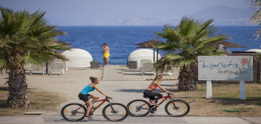palestra, ping-pong e 2 campi da tennis, calcetto e pallavolo (attrezzatura su cauzione). È possibile praticare presso il Kipriotis Village (a 300 m) minigolf e basket mentre presso il Kipriotis Maris pallanuto e bocce. Nelle vicinanze a pagamento, windsurf, snorkeling, sci d’acqua, equitazione e sport acquatici motorizzati e non.