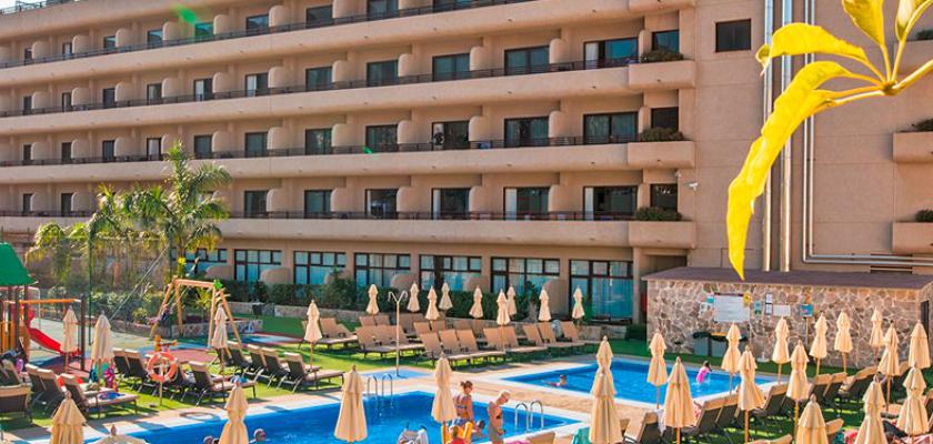 Hotel conosciuto e apprezzato, un 4* dallo stile classico ma comunque confortevole, con ampie camere, piacevoli aree comuni e ben 5 piscine!Situato in centro all’elegante Costa Adeje e a pochi passi dalla bella spiaggia di Fañabe, con il suo lungomare brulicante di locali e ristorantiOffre tutti i tipi di trattamento, dal pernottamento e prima colazione per i più indipendenti, passando per la mezza pensione naturalmente libera (nella versione Easy Meal), fino ad arrivare al più ricco e completo tutto incluso per una vacanza più “sedentaria”. Con una piacevole passeggiata si raggiunge anche la bellissima spiaggia del Duque considerata la spiaggia dei vip. Con altrettanta facilità si può esplorare il variegato mondo di locali, negozi, ristoranti e locali che animano la zona, come la discoteca El Faro Chill Art, fra le più gettonate. Costa Adeje è anche un’ottima base di partenza per muoversi alla scoperta di un’isola meravigliosa, di origine vulcanica, sviluppata tutto attorno al grande vulcano del Teide, ancora attivo, la montagna più alta di Spagna con i suoi quasi 4.000 metri di altezza. El Pico, come lo chiamano da queste parti, si raggiunge in meno di un’ora di strada, fa parte del Parco Nazionale de Las Cañadas, Patrimonio Naturale dell’Umanità, ed è meta di escursioni per speleologi, geologi e appassionati di tutti i tipi. Ma l’isola offre tante altre bellezze, come la spiaggia della Teresitas nel nord, un’incantevole baia protetta, con acqua cristallina e una lunghissima spiaggia di sabbia dorata, o la più selvaggia spiaggia de La Tejita, dalle acque turchesi e incastonata tra rocce vulcaniche di colore rosso. Poco prima di Costa Adeje si trovano invece le località più festaiole dell’isola, Playa de Las Americas e Los Cristianos, dove si incontrano le discoteche e i disco pub più famosi e alla moda. La capitale dell’isola, Santa Cruz, si raggiunge in poco più di un’ora di strada, forma un tutt’uno con la città di San Cristobal de La Laguna, definita la Firenze delle Canarie e dichiarata Patrimonio dell’Umanità dall’Unesco per la bellezza del suo centro storico.