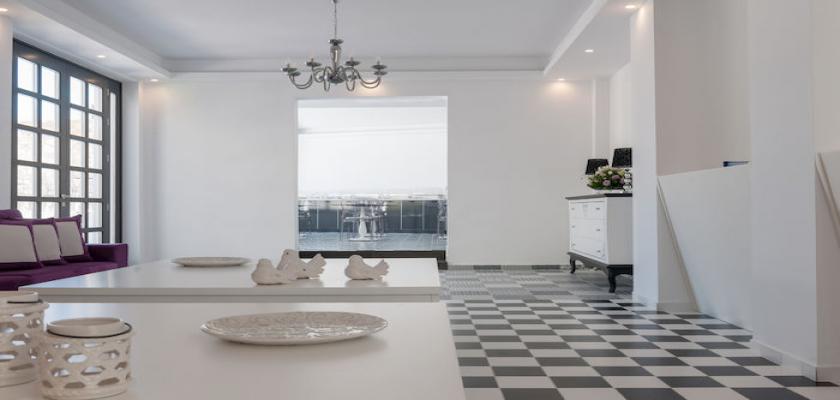 Struttura elegante e curata per una clientela anche esigenteQuando l'ospitalità incontra la tradizione, questo è il Mar n Mar Crown Suite Hotel: design innovativo, camere eleganti e un servizio di ottimo livello. È una piccola e moderna struttura dalle pareti bianche affacciata sul Mar Egeo, alle pendici del Mesa Vouno, un monte roccioso sul quale si trovano le rovine dell'antica città di Thira, dallo stile minimale e coerente con la tradizione e architettura dell'isola. Ideale sia per una clientela giovane che vuole stare a pochi passi dal centro dell'animata Kamari raggiungibile in pochi passi a piedi che per una clientela anche più esigente grazie all'ottimo livello dei servizi offerti.